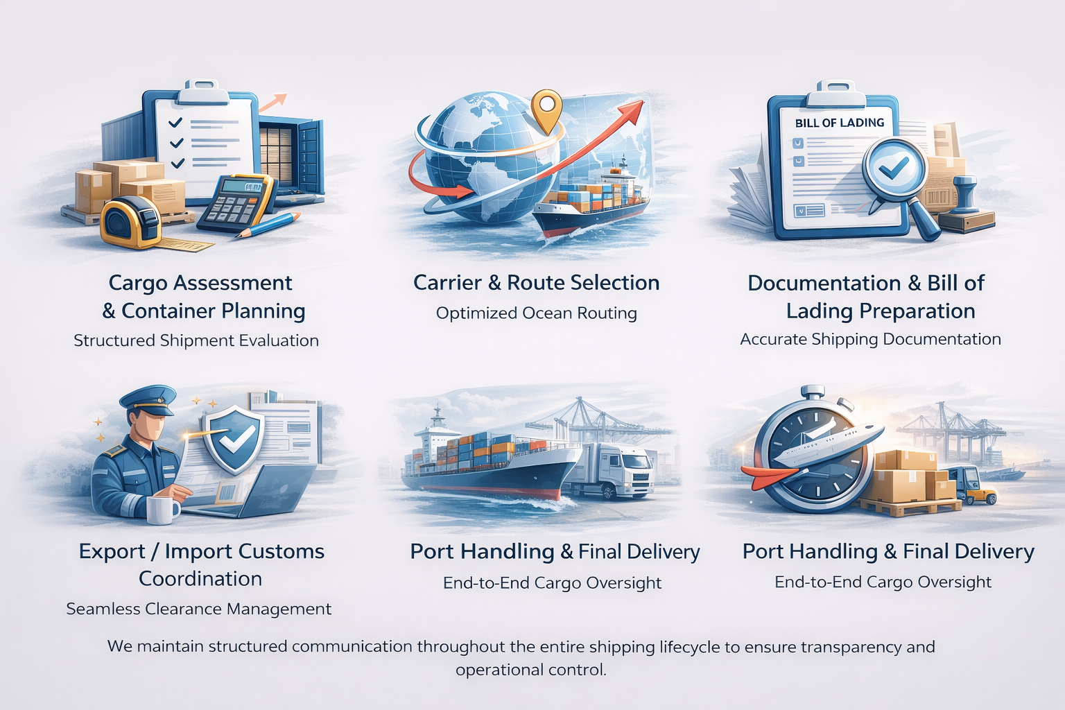 Each shipment is evaluated based on cargo classification, port regulations, and transit timelines.